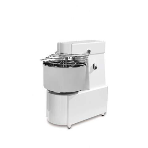 Malaxor pentru aluat tare, folosit pentru covrigarie, patiserie, pizza sau brutarie. Alimentare: 380V Putere: 1.4kW Dimensiuni (LxAxH): 440x690x830mm Capacitate cuva: 50 litri Dim cuva: 430x210h mm Capacitate maxima aluat: 35 kg Randament: 120kg/h Greutate: 115kg Cuva, spirala si gratar realizate din inox Cuva si cap fixe, distributie pe lant 2 viteze